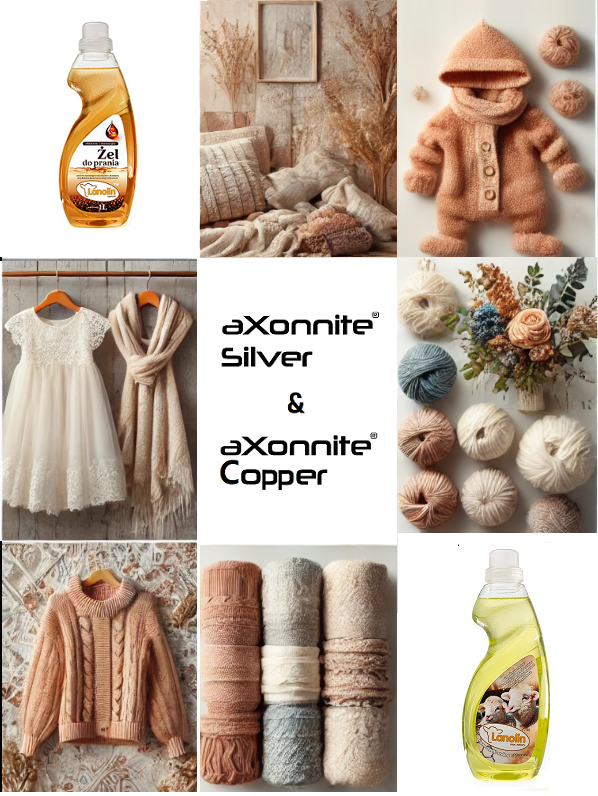 Dzięki połączeniu nanocząstek srebra i nanocząstek miedzi aXonnite® z regenerującą lanoliną, obie formuły nie tylko skutecznie piorą, ale też chronią włókna, zachowując ich naturalną miękkość, elastyczność i kolor.