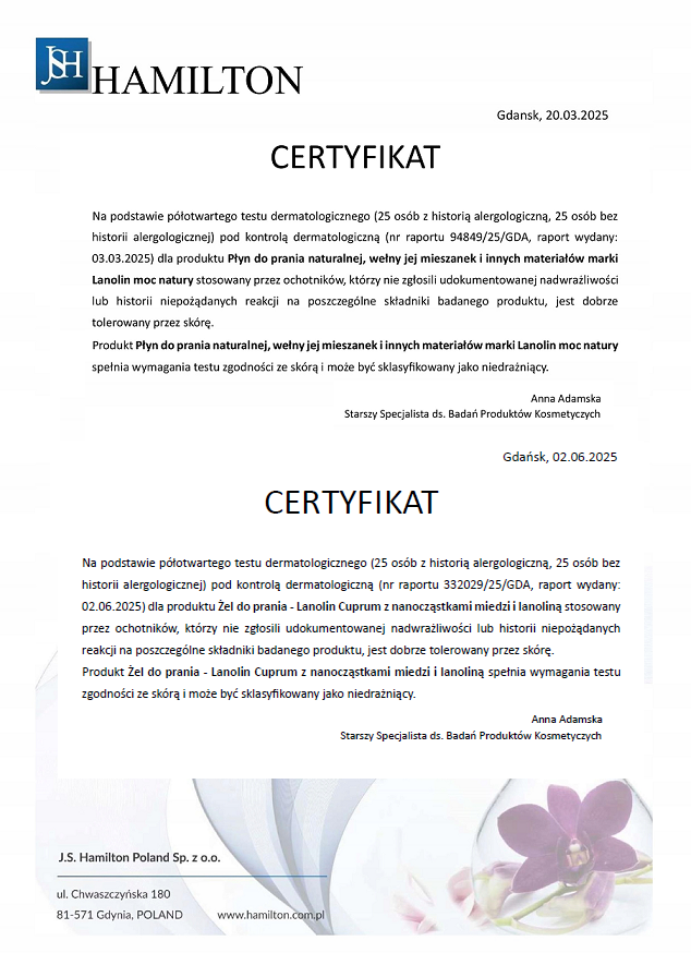 Obie formuły Lanolin – z nanosrebrem (pH 6,7) oraz żel z nanomiedzią (pH 5,1) – przeszły kompleksowe badania, potwierdzające ich bezpieczeństwo i skuteczność.
